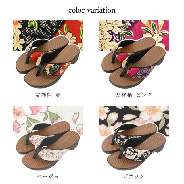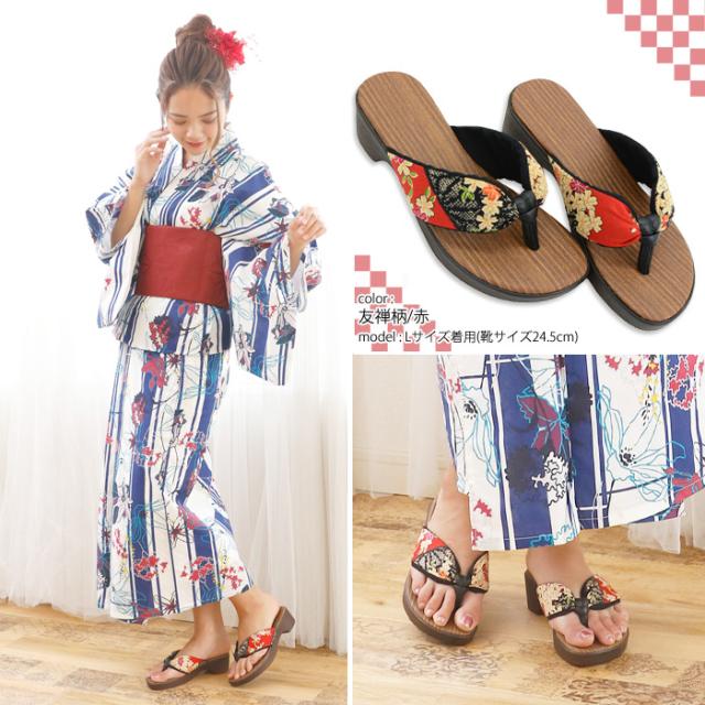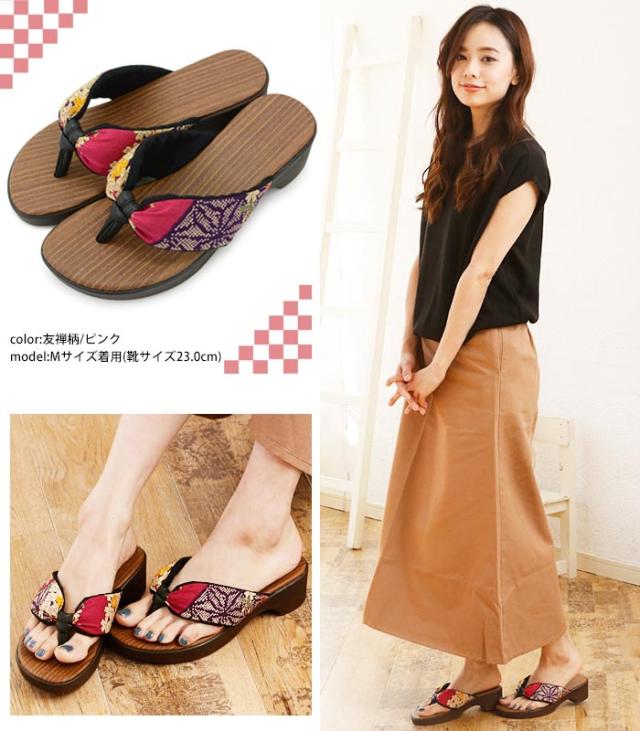和柄サンダル レディース 日本製 木目調 友禅 履きやすい ウレタン底 コットン 下駄風 和 (msg-80301)【沖縄県除き送料無料】 トング サンダル 浴衣 和装 祭り 履物 女性 agesugi_sfa