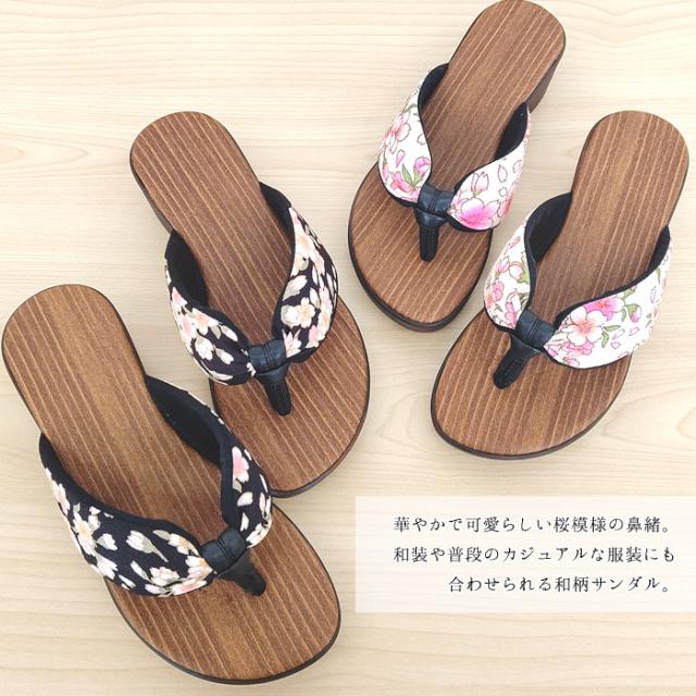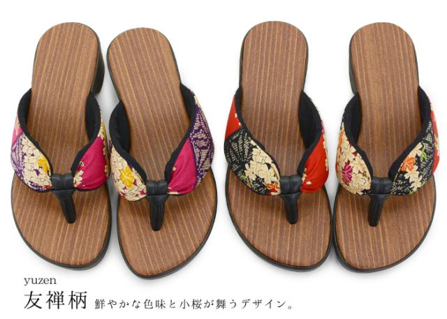 鮮やかな色味と桜の友禅柄がかわいい和柄サンダル。