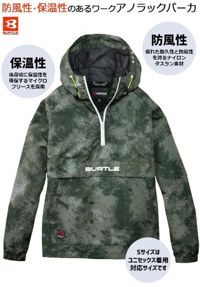 BURTLE(バートル)の防風性・保温性があり、ワークシーンでしっかりと機能するアノラックパーカーです。