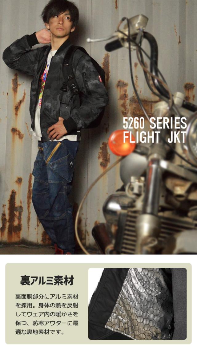 中綿入り防寒ジャケット フライト防寒ジャケット MA-1 5260 バートル BURTLE メンズ レディース 防風 保温 撥水 ワークウェア 作業着 作業服