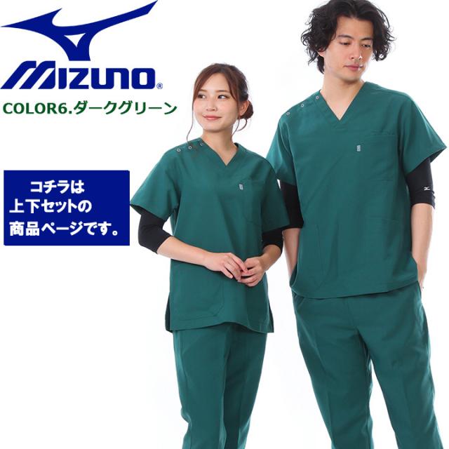 スクラブ 上下セット ミズノ MIZUNO ダークグリーン上下 男女兼用 MZ-0021 MZ-0022 制電 制菌 医療白衣 ドクター 歯科 チーム 動物病院