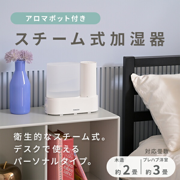 加湿器 卓上 スチーム式 スチーム式加湿器 スチーム加湿器 アロマ対応 コンパクト 小型 木造約2畳 プレハブ約3畳 タンク容量1.5L KKS1-J15E(W)/(G) 加湿器 加湿機 おしゃれ シンプル 潤い 山善 YAMAZEN 【送料無料】