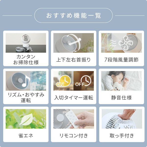 | 商品説明 | ●電源:AC100V(50/60Hz) ●消費電力:17W(50/60Hz) ●電気代目安(1時間あたり):約0.5円(50/60Hz) ●コード長さ:約1.6m ●DCモーター搭載 ●風量切替:7段階 ●入タイマー:2/4/6時間 ●切タイマー:1/2/4時間 ●左右自動首振り ●上下自動首振り ●リズム風搭載 ●おやすみモード搭載 ●メモリー機能搭載 ●お手入れ簡単:工具不要で前面ガード取り外し可能 ●リモコン付属 ●メーカー保証1年付き ●畳数目安:20畳まで ※2025年2月よりグレージュ色、グレー色を追加しております |