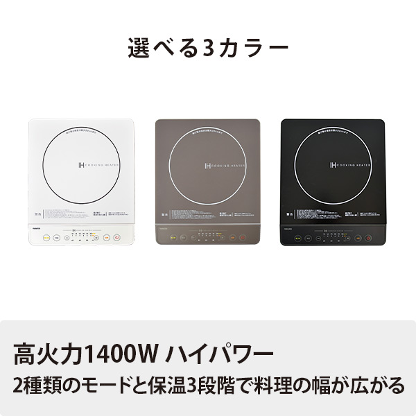 | 商品説明 | ●電源:AC100V(50/60Hz) ●消費電力:1400W ●電源コード長さ:1.8m ●火力調整:6段階(300W-1400W) ●揚げ物調理対応:温度調整6段階(150度-200度) ●使える鍋:【材質】鉄・鉄鋳物、鉄ほうろう、ステンレス、多層鋼なべ 【鍋底計上】底の平らなもの、加熱調理の場合そりが3mm以下のもの、揚げ物調理の場合そりが1mm以下のもの 【大きさ】直径120mm〜260mm ※揚げ物の場合は180mm〜220mmまで ●マグネットプラグ採用で安全 ●メーカー保証:1年間 ※2021年4月からブラウンとホワイトの2色を追加しております |