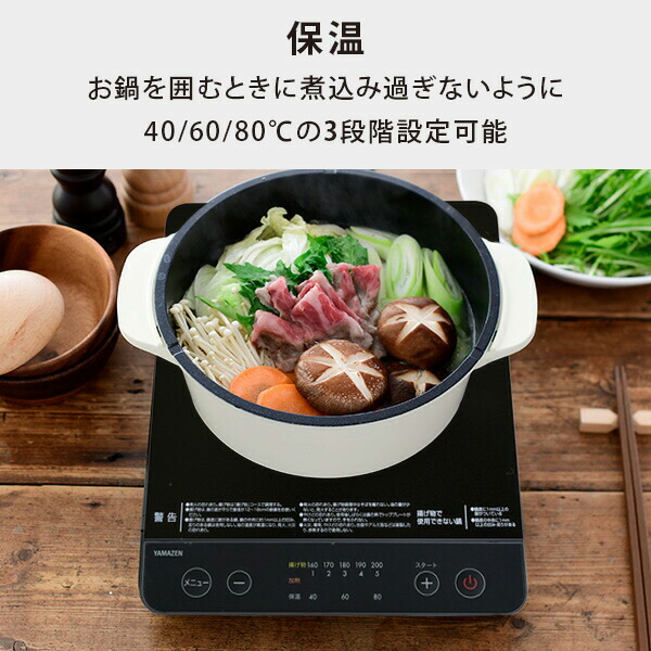YAMAZEN ヤマゼン 山善 通販 ih調理器 ih対応 ihヒーター クッキング IHクッキングヒーター 鍋 料理 天ぷら 揚げ物 高火力 新生活 一人暮らし 1人暮らし 鍋パーティー 料理 煮る 炒める 茹でる 焼く 温める 揚げる 安全 80510/黒 94834/茶 94835/白 |