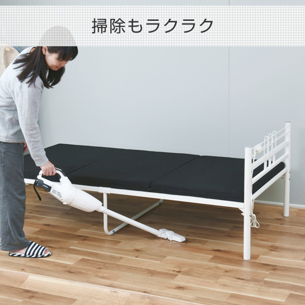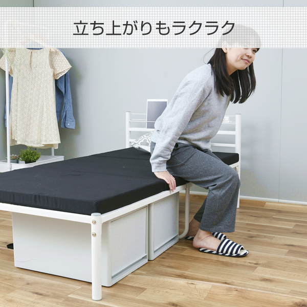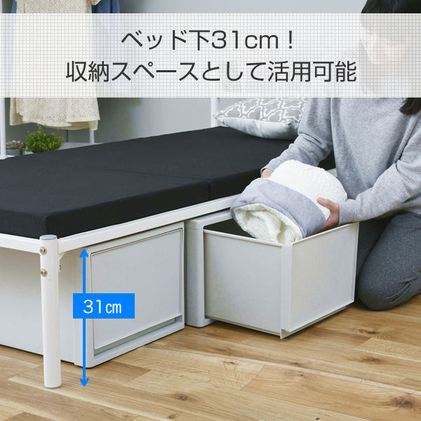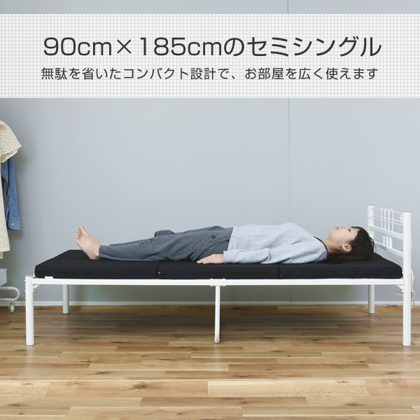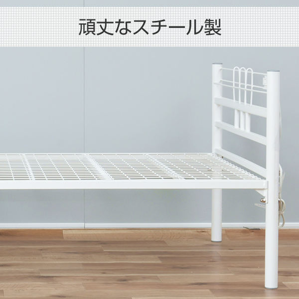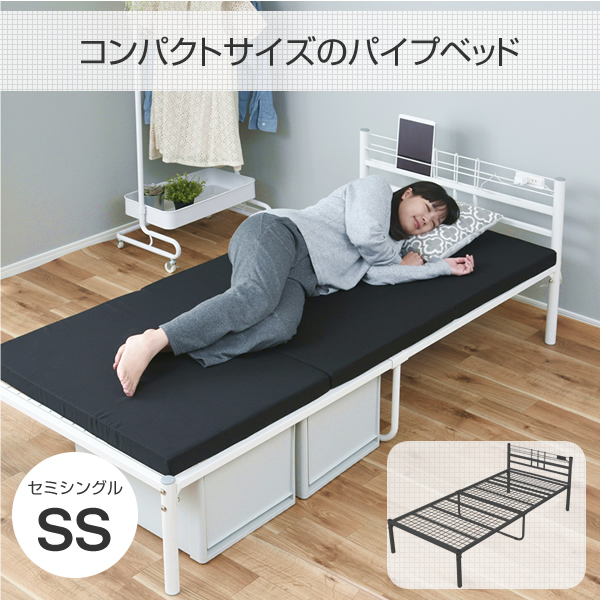 | 商品説明 | ●コンパクトなパイプベッド ●セミシングルサイズ ●スマホやタブレット置き場のスリムなラックは、2口コンセントで充電もOK ●ベッド下は収納スペースとして活用可能 ●床面は、強度と通気を考えて、スチールメッシュ仕様 ●床面サイズ:幅90 長さ185cm ●ベッド下高さ:31cm ※2020年3月23日より、本体サイズを見直し、コンセントを追加してリニューアルします。 |