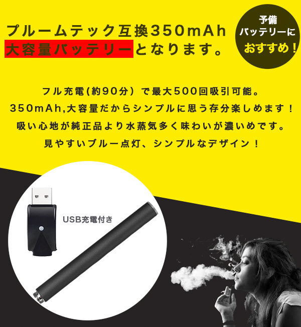 互換バッテリー 2本セット 本体 水蒸気多め 味濃いめ 長く吸える 350mAh 電子タバコ MASTER MS-50