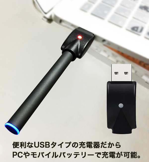 便利なUSBタイプの充電器だからPCやモバイルバッテリーで充電が可能。
