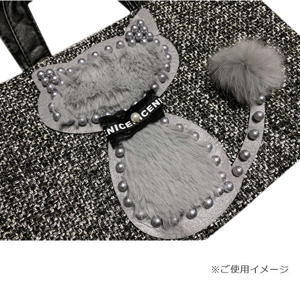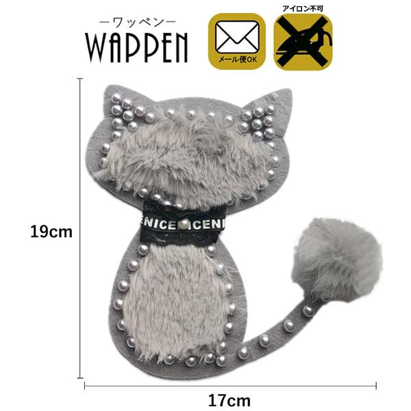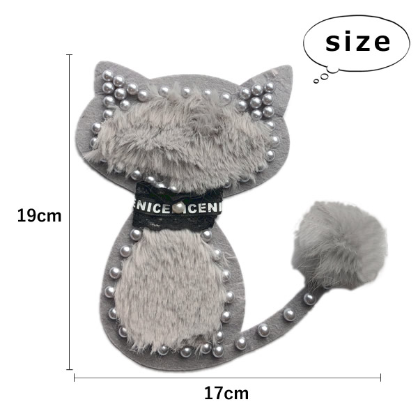 ファー ワッペン ストーン ビッグ BIG 縦19cm×横17cm ネコ ねこ cat アニマル 動物 手芸 デコ ふわふわ アップリケ 母の日 プレゼント ギフト