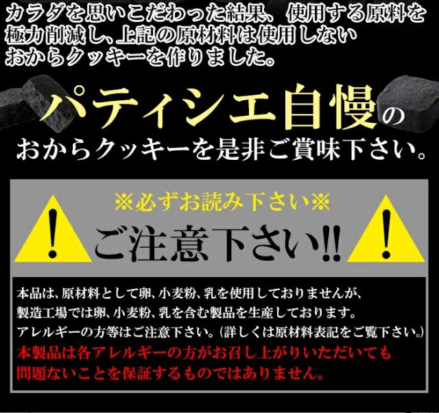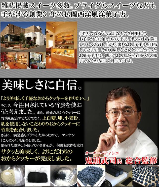 - 早い対応ありがとうございました。竹炭おからクッキー食べやすく、美味しくいただいています。