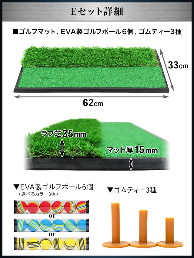 ゴルフマット 2WAY 33×62cm ゴルフボール ゴルフティー Eセット ゴルフ 練習 マット 素振り スイング 練習器具 室内 屋外 人工芝 ゴムマット ラフ フェアウェイ