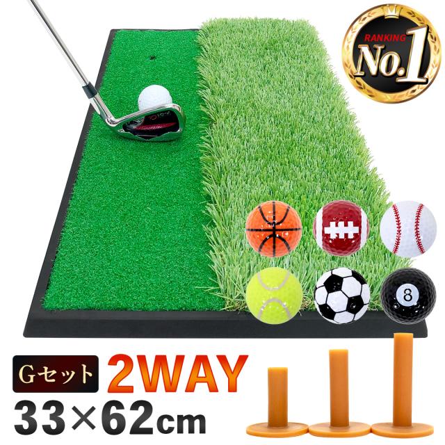ゴルフマット 2WAY 33×62cm ゴルフボール ゴルフティー Gセット ゴルフ 練習 マット 素振り スイング 練習器具 室内 屋外 人工芝 ゴムマット ラフ フェアウェイ