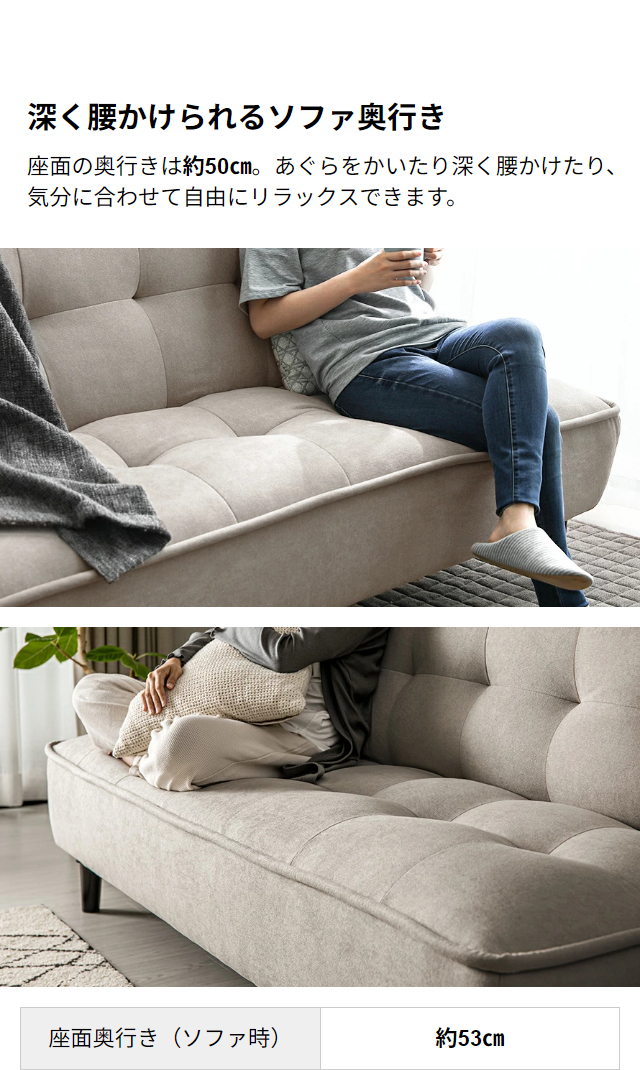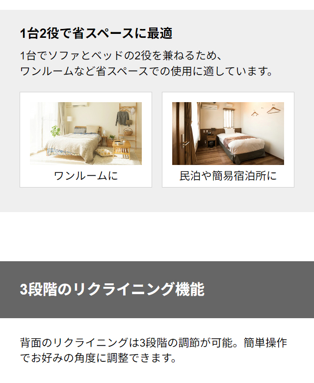 - お値段はお手ごろなのに、とてもしっかりしたソファーベッドです。ベッドにした時の幅もたっぷりあるので、ベッドとしてもとても機能します。クッションも好みの硬さで、大満足です。カラーはセージグリーンを選びし...