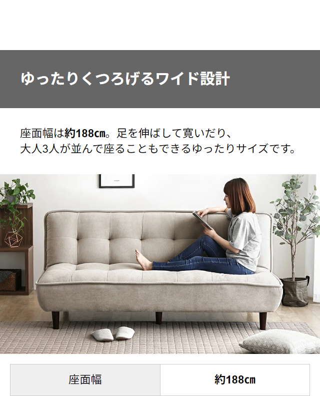 ソファ時…約 幅188×奥行き85×高さ80(座高42)㎝