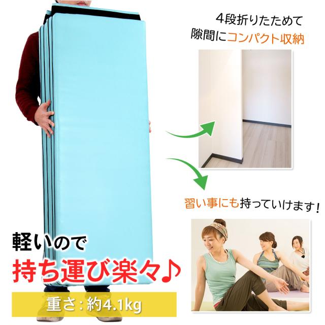 【大人気の体操マットシリーズ】KaRaDaStyleの大人気商品である体操マットシリーズの4段折りたたみタイプ連結可能な大型ストレッチマット!大型サイズなのに意外と軽量でコンパクトだから持ち運びも収納も楽々!ヨガやストレッチはもちろんのこと、筋トレや子供のプレイマットとしてもご利用いただけます。折り畳みスポーツマットを様々なサイズとカラーで取りそろえておりますので、必ず目的の用途に合ったマットが見つかります!