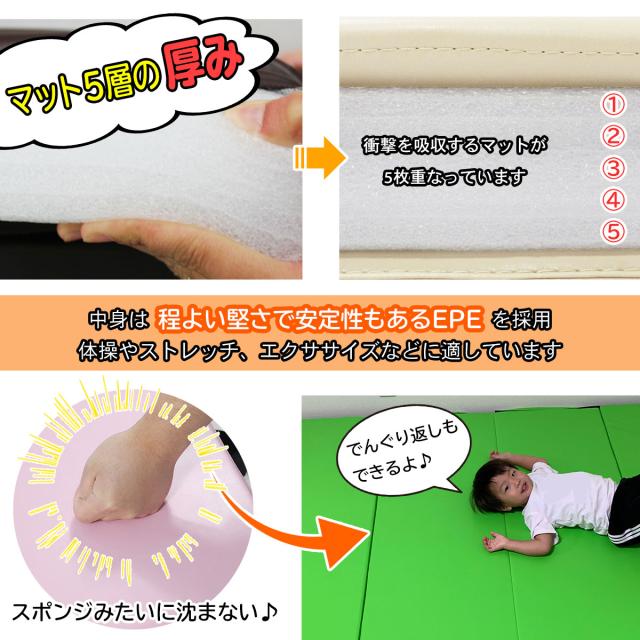 体操 マット 折りたたみ ストレッチマット エクササイズ トレーニング 鉄棒 跳び箱 リングフィット 運動 子供 プレイマット ヨガマット スポーツマット 防音 家庭用 大型 連結 180×120×5cm (連結可能タイプ)