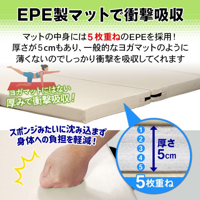 5cmの厚みでクッション性があり、運動に適度な弾性です。
