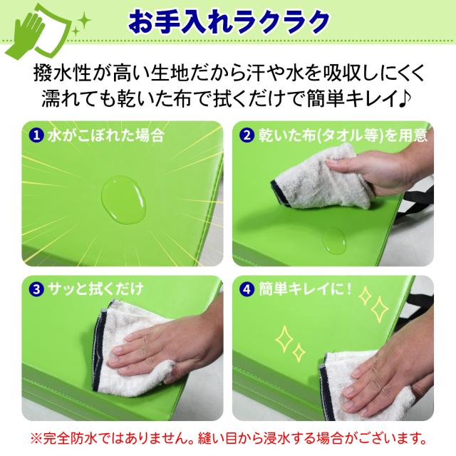 PVCレザーの防水生地なので汚れにくく、汗がたれてもサッと拭くだけで掃除しやすいのがGood!!