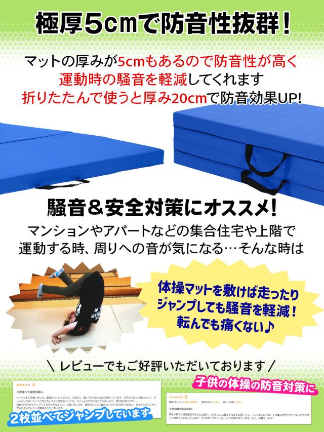 体操 マット 折りたたみ ストレッチマット エクササイズ トレーニング 鉄棒 跳び箱 リングフィット 運動 子供 プレイマット ヨガマット スポーツマット 防音 家庭用 180×100×5cm (4段折りたたみタイプ)