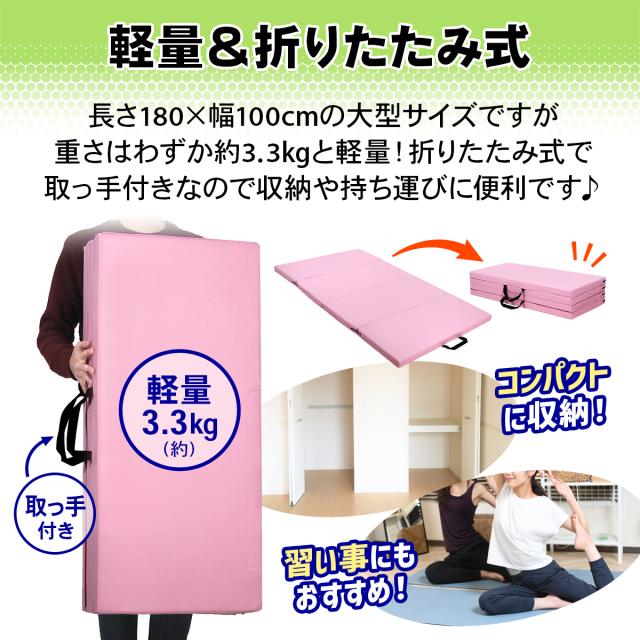 ストレッチやヨガなどのエクササイズや、子供や赤ちゃんが安全に遊ぶためのプレイエリアマットとして♪軽量で折りたためるから持ち運びも収納も楽々!
