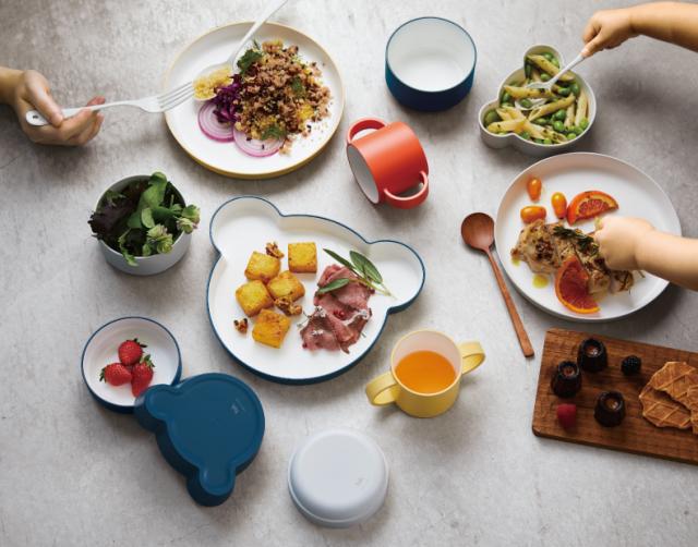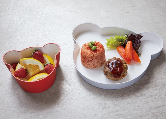 手づかみ食べ時期の小さな子どももつかみやすい、浅いボウル。割れない丈夫な食器なので、子どもの自分で食べたい気持ちを尊重できます。