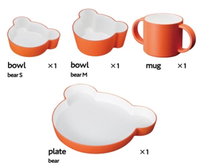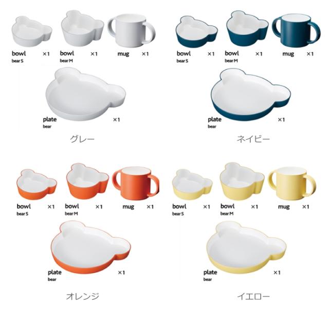 キッズディッシュプレートベア、ボウルベアS、ボウルベアM、マグの4点がセットになったギフトボックスです。