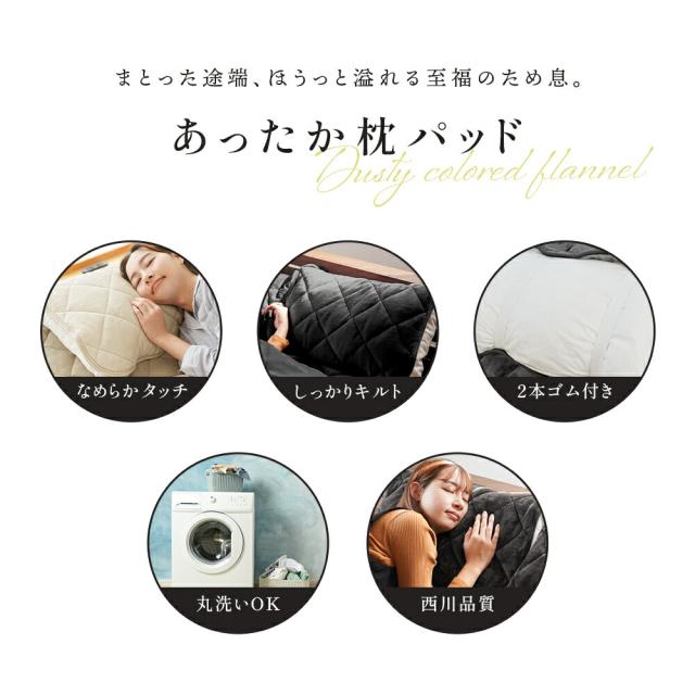 西川 あったか 枕パッド 43×63cm用 約50×60cm 無地カラー とろける フランネル「纏生」 あたたか 秋 冬 まくらパッド ピローパッド 艶やか 1枚単品 おしゃれ オリジナル 枕パット ピローパッド 当社限定品 節電