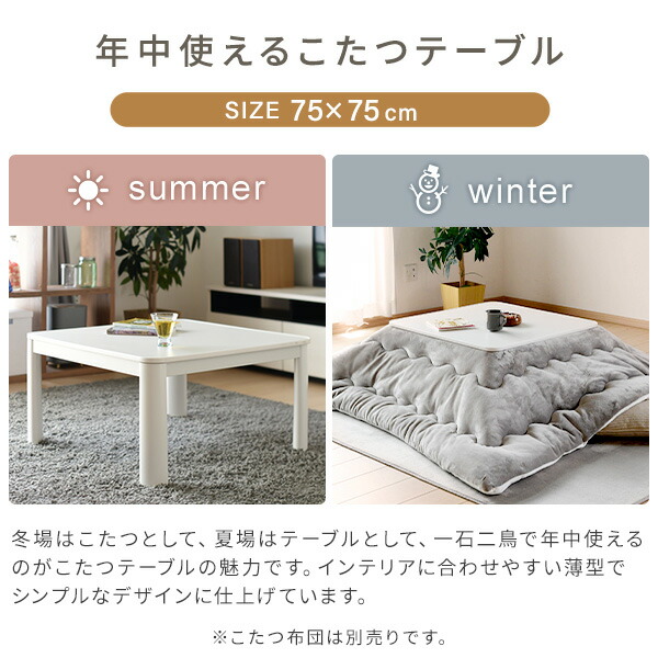 こたつ こたつテーブル コタツ 75×75cm 正方形 おしゃれ 一人用 ヒーター SEU-752 コタツ こたつテーブル リビングこたつ 山善 YAMAZEN 【送料無料】