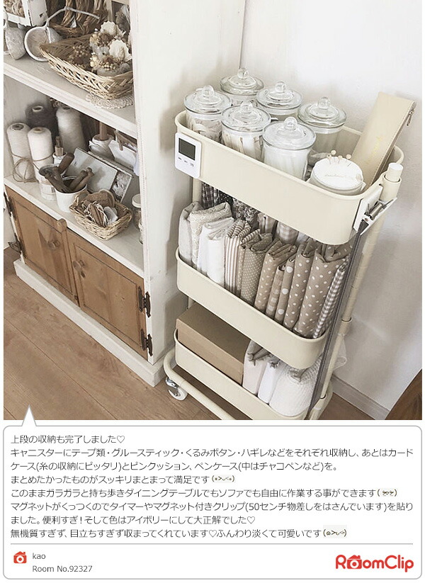 - 使い勝手が良かったので2つ目の購入です。 3段ありますが2段でも問題なく使えます。 一つはリビングで文房具やティッシュ、軽いお掃除セットを入れて、二つ目は玄関で折り畳み傘やマスクなどを入れて使っていま...