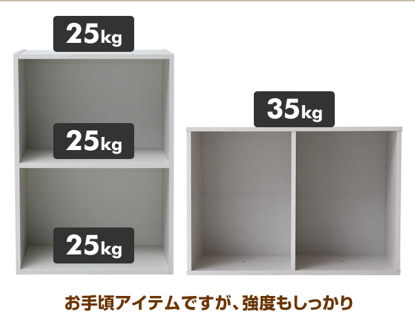 | 商品説明 | ●プラスドライバーをご用意ください。 ●お部屋に溶け込みやすいシンプルな色のカラーボックス ●3段タイプと2段タイプ ●タテにもヨコにも使えてアレンジしやすい収納棚 ●収納部内寸(タテ向):幅39 奥行27 高さ27cm ●棚板耐荷重: 1段あたり30kg ●背面化粧なし ●ネジ隠しシール付属 |