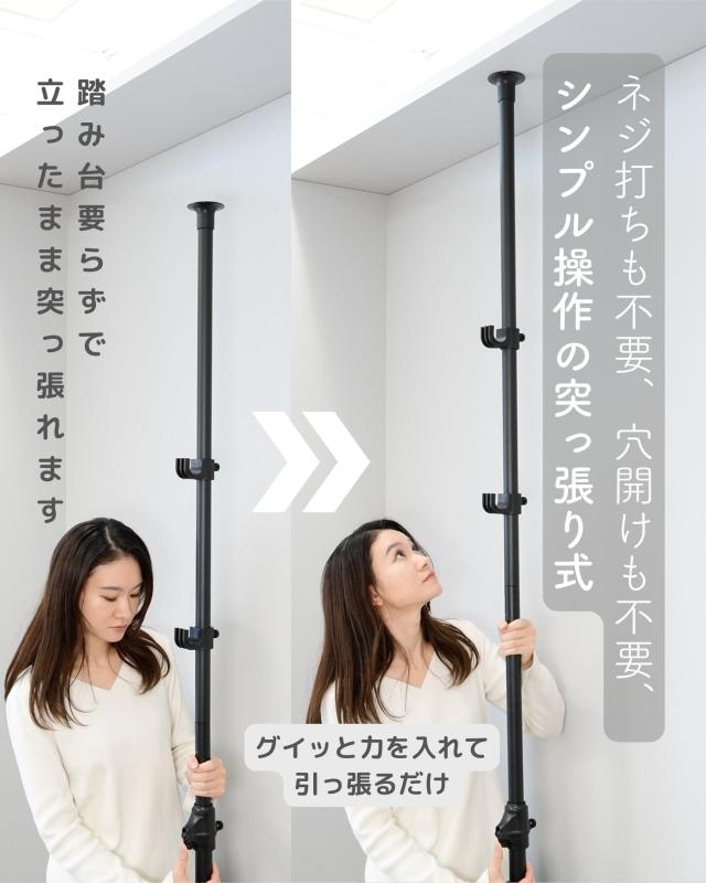 - 天井に突っ張り押し付ける仕様なので、天井強度が大丈夫か心配でしたが、そんな心配は全く無く、しっかりと固定できました。天井にも凹みは一切ありませんでした。 服もかなり吊りましたが一切揺れませんし、服をか...