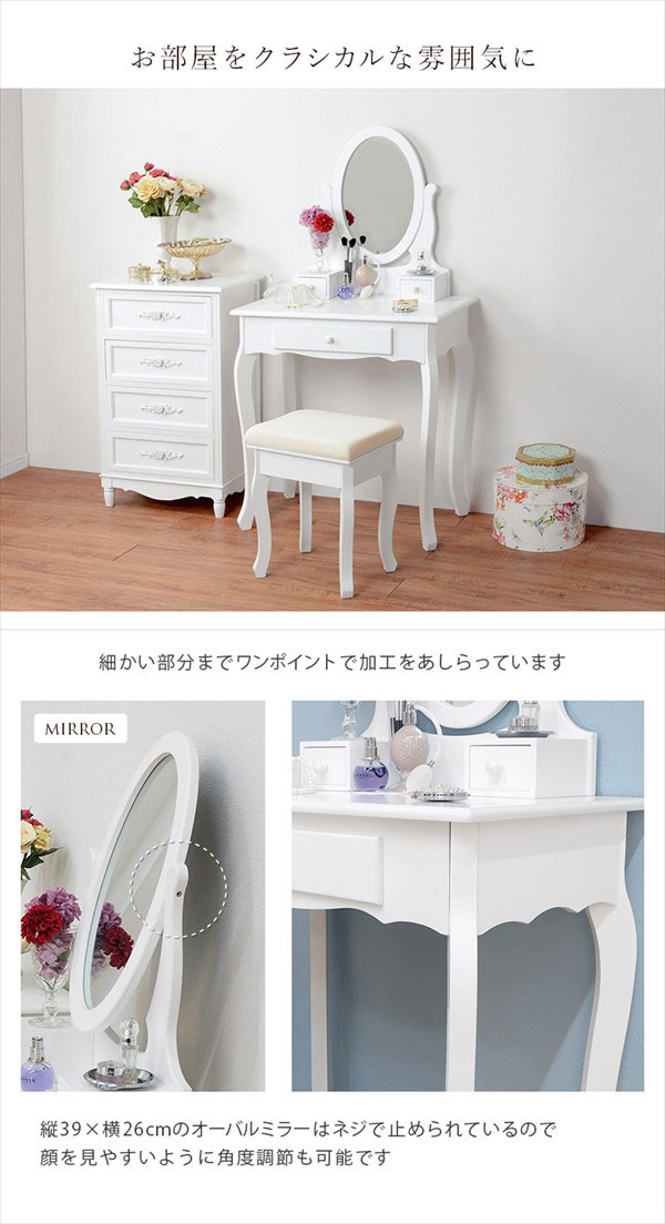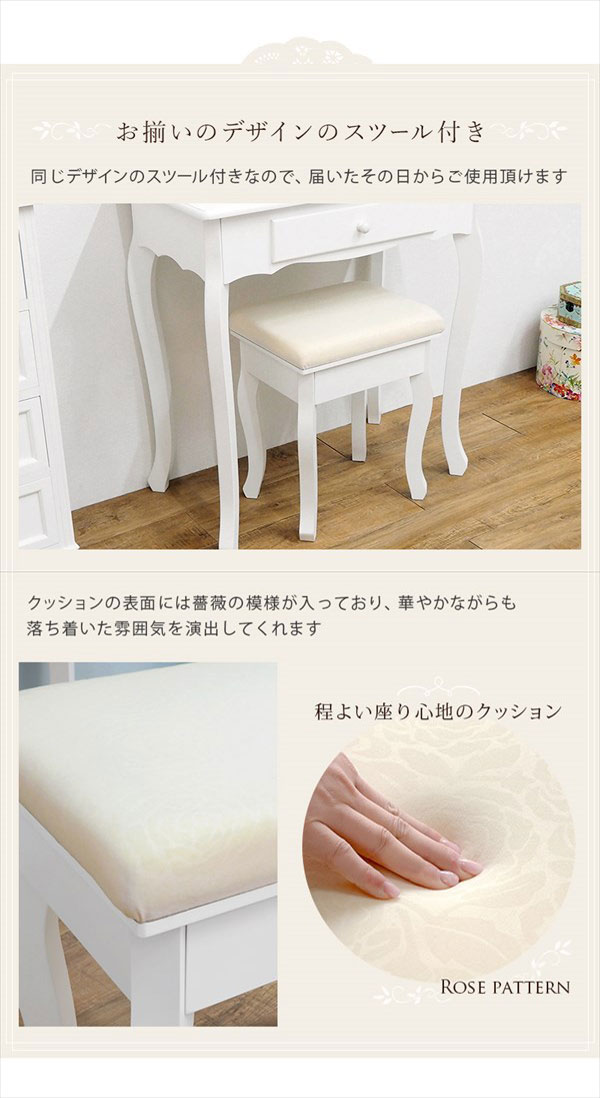 おしゃれな猫脚ドレッサー 化粧台 ドレッサー 【送料無料】 スツール付き 椅子付き 収納 姫系 ホワイト 白 デスク 安い おしゃれ 鏡付き 引き出し付き