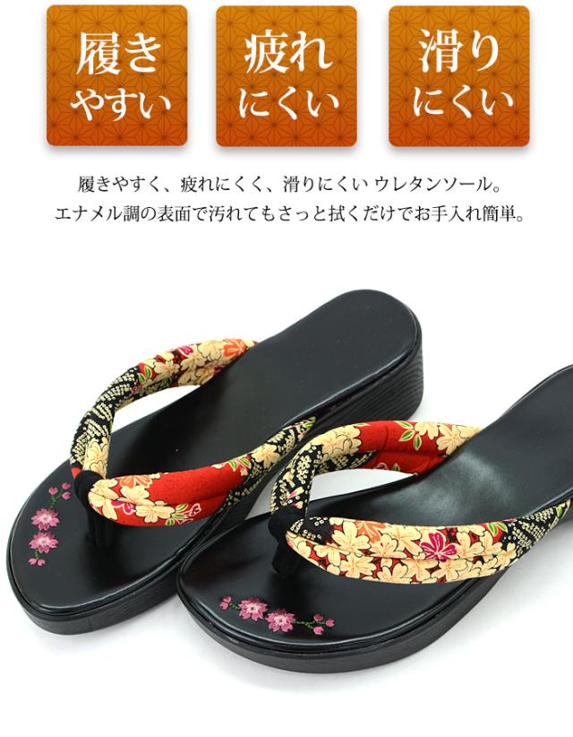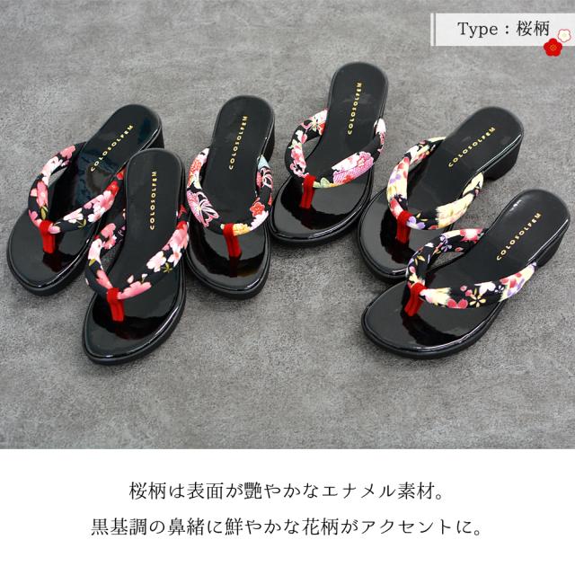 草履 レディース 女性 痛くない 日本製 竹春 和装 履物 花柄 ウレタン底 エナメル調 二石鼻緒 草履 (msg-80621-51791) 着物 浴衣 桜 下駄風サンダル サンダル つっかけ よさこい 祭草履 軽量 履きやすい 友禅 祭り ギフト プレゼント 母の日 女性 agesugi_sfa