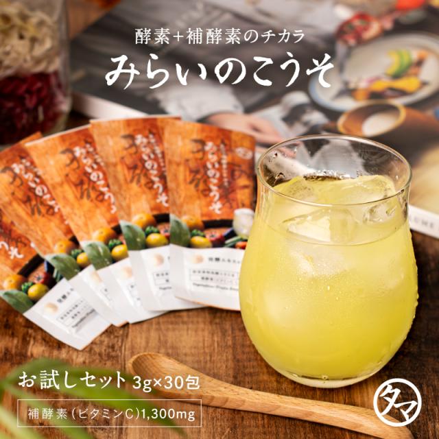 みらいのこうそ 分包タイプ(3g×30包入り) 送料無料 酵素と補酵素ビタミンC&酵母・麹も新配合!砂糖不使用で発酵させ、樽の下に沈んだ食物繊維と酵素濃度の高い部分のみをフリーズドライに。小分け 個包装 持ち運び 携帯