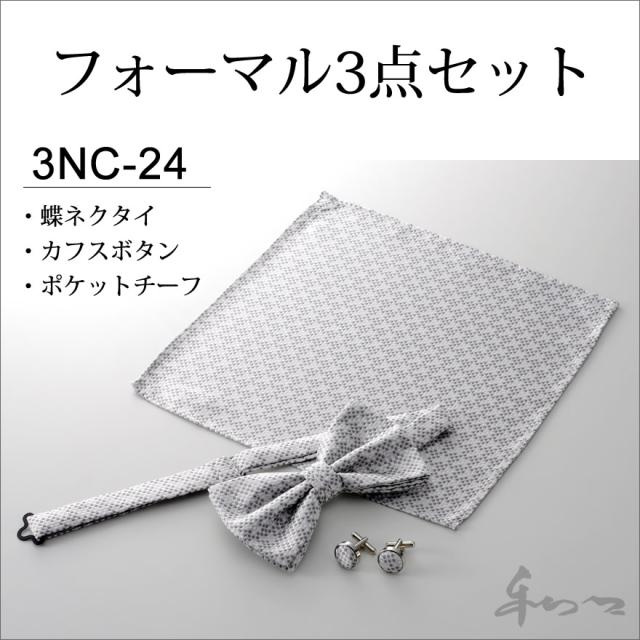 フォーマル 蝶ネクタイ カフスボタン ポケットチーフ 3点セット 3nc-24 ウイングカラー ブライダル 結婚式 シルバー