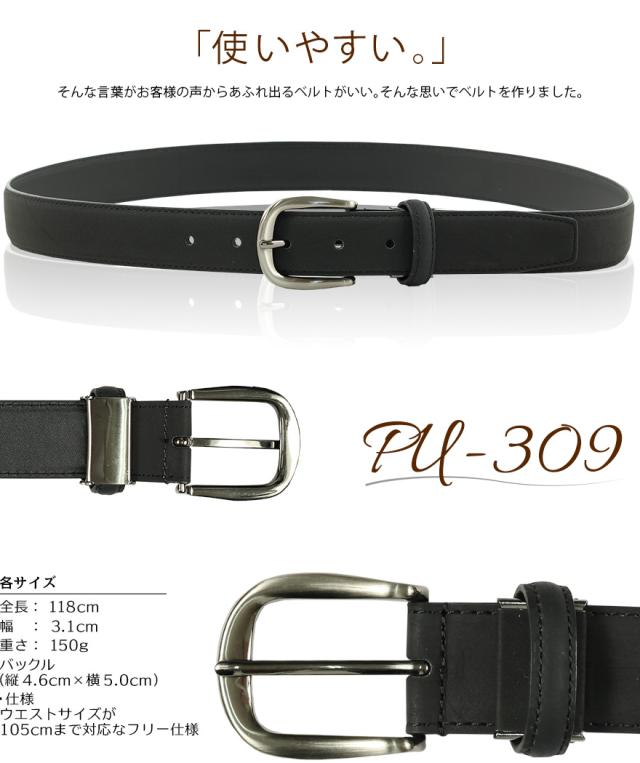 ベルト 合皮 PU レザー カジュアルベルト メンズ ビジネス フォーマル カジュアル PU-309 スーツ ジーンズ 黒