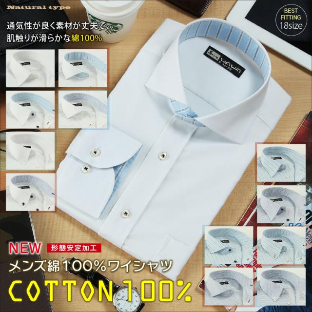 【メール便】 長袖 綿100% メンズ ワイシャツ 形態安定加工 給水速乾12種類から選べる ホリゾンタル 白 青 送料無料