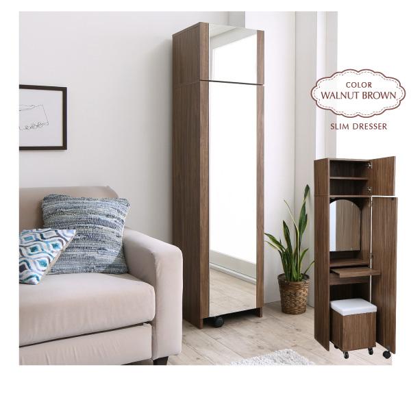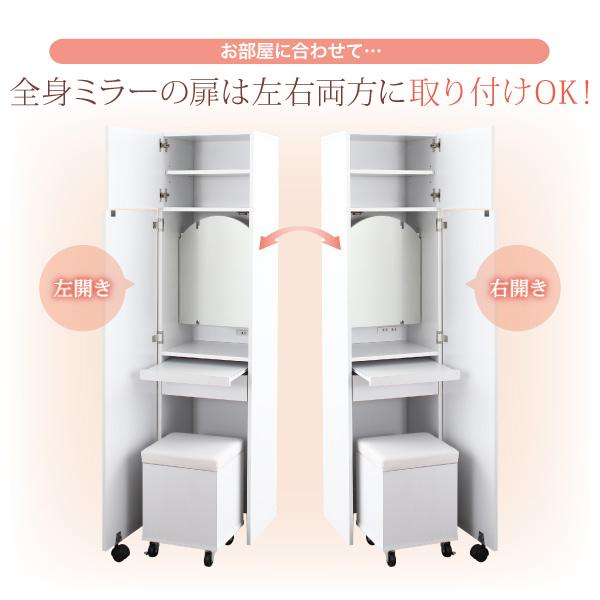 扉を閉じれば全身ミラー ドレッサー 椅子付き 幅40 送料無料 収納付き スタンドミラー 化粧台 全身 姿見 おしゃれ スツール付き スリム 省スペース