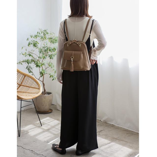 【ランキング1位獲得】 1秒でリュック⇔ショルダー リュック リュックサック レディース 小さめ 大容量 2way きれいめ ミニリュック 通勤 通学 おしゃれ 大人 かわいい 肩掛け タッセル 丸い 台形 ショルダーバッグ ミニバッグ 小さい binb-p610y