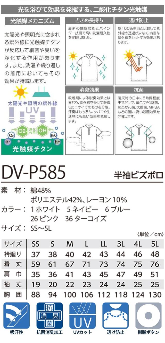 【即日発送】ビズポロシャツ 作業服 ポロシャツ 半袖 ビジネス メンズ クールビズ 春夏 ビジネスカジュアル 吸汗 通気性 抗菌 消臭 透け防止 UVカット 無地 白 ホワイト 紺 ネイビー タカヤ商事 TAKAYA 半袖ビズポロ DV-P585 作業着