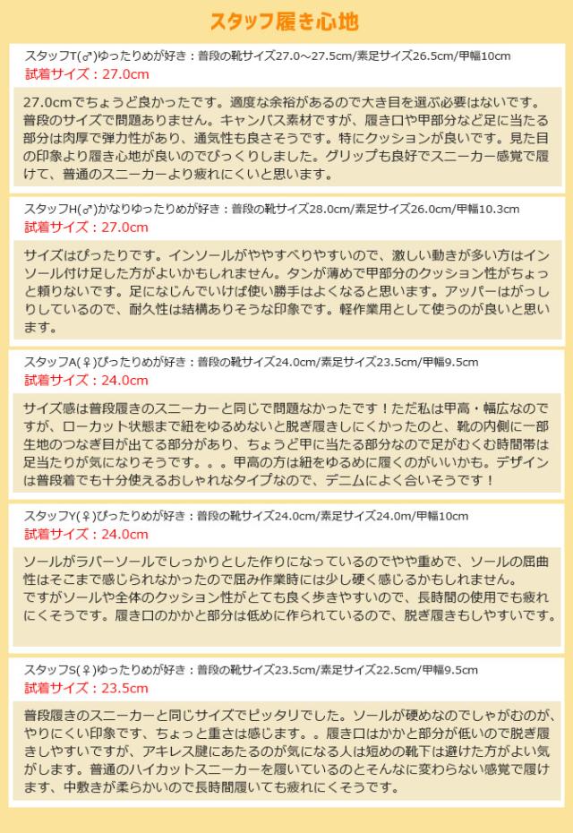 | 素材 | アッパー:キャンバス・合成皮革 ソール:合成ゴム インソール:取外し不可 先芯:鋼鉄先芯 重量:約480g(26.0cm片足計測) | |||||
