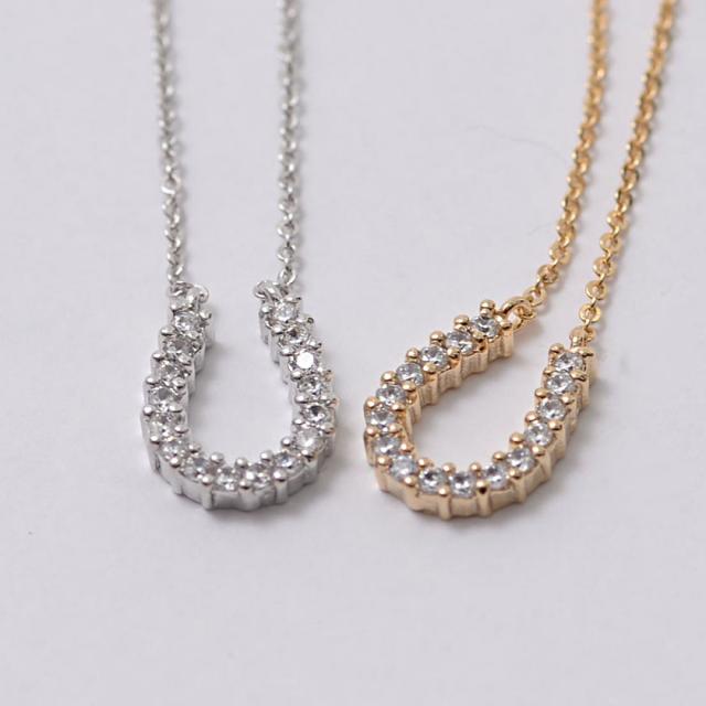 馬蹄の形が幸運を呼び込んで逃がさないと言われ幸運を招くとされている「ホースシュー」のモチーフにストーンを贅沢にも敷き詰めました。