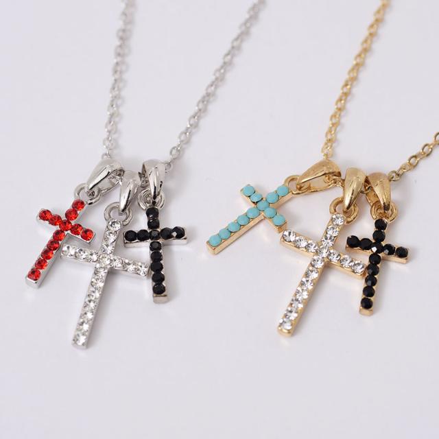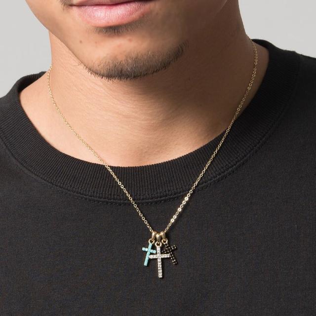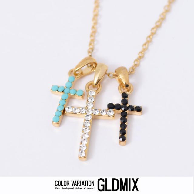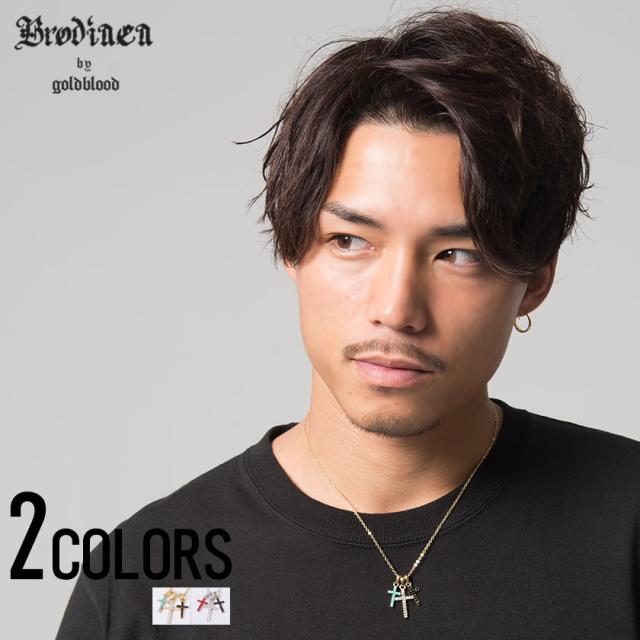 ネックレス アクセサリー メンズ Brodiaea by goldblood ブローディアバイゴールドブラッド カラークリスタル3クロスタイニーネックレス 即日発送 ネックレス クロス カラー 3連 FREE シルバー ゴールド ジルコニア ラインストーン [K181403N]