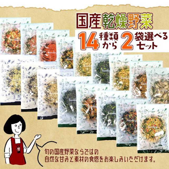 乾燥野菜14種類から2袋選べるセット/国産 メール便 送料無料 チャック付 ボイル済み 保存食 時間短縮 スープ 小分け こわけや