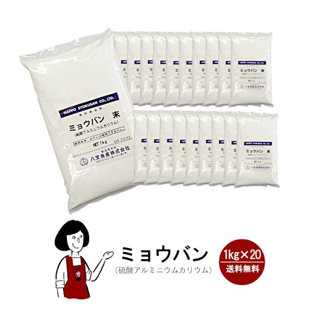 溶けやすいミョウバン 1kg×20個セット 宅配便 送料無料 色落ち防止 アク抜き剤 殺菌 消臭 制汗 デオドラント こわけや