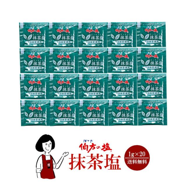 伯方の塩 抹茶塩 1g×20袋 メール便 送料無料 小袋 使いきり 調味料 塩 アウトドア お弁当 イベント 和食 洋食 肉料理 野菜料理 魚料理 BQQ 小分け テイクアウト こわけや
