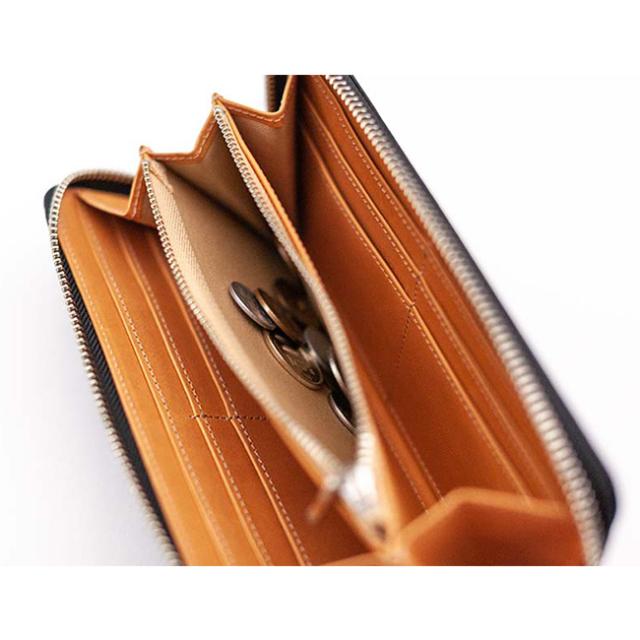 | クラシカルな物が持つ普遍性と現代のファンクションとの融合をテーマとして展開するバッグブランド。 数多くの商品群の中から「機能と用途と素材」をフラットに捉え、現代の生活にふさわしい姿へ。こちらは収納力のあるスタンダードなロングウォレット。外装には国内の老舗タンナーと協力し作り上げた国産防水レザーを使用。表面加工ではなく、なめしの工程で防水剤を染み込ませることで、本革のナチュラルな風合いはそのままに、高い防水性能を持たせることに成功しました。内装にはタンニンレザーを用いた非常にベーシックな設計となっており、ファスナーには最高級品のYKKエクセラを使用しています。機能面においては現代の生活サイクルに溶け込んでいる非接触カード(suica/TIMES等)を収納するポケットが2室配置。今の生活をよりストレスフリーにしてくれるアイデアが詰め込まれています。パッケージとしてギフトにも最適なブランドロゴを刻印したオリジナルBOXが付属します。 |