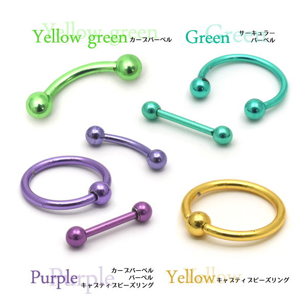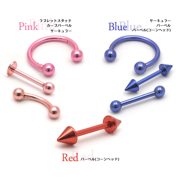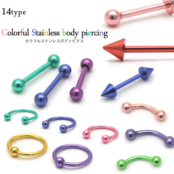 カラフル ステンレス ボディピアス 16G 全14種 シンプル 定番 ボディピアス バーベル カーブバーベル コーン サーキュラー CBR ラブレットスタッド キャプティブビーズリング cbr pierced earrings