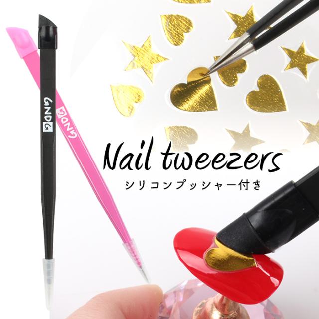メール便 ツイーザー[03]シリコンプッシャー付 | ジェルネイル セルフネイル ネイルシール ネイルステッカー ネイルツール ツイーザー ピンセット シリコンプッシャー プチプラ ネイル ネイル用品