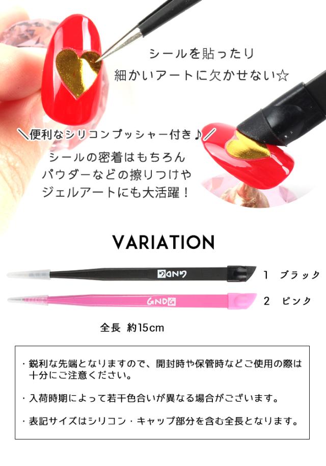 | 商品説明 | 先が極細なので、小さなネイルパーツや ネイルシールの取り扱いにぴったり♪ シリコンプッシャー付なので シールを密着や、パウダーアートなどに重宝するアイテムです♪ また、シリコン部分は取り外し可能なので お手入れも楽チンです♪ |